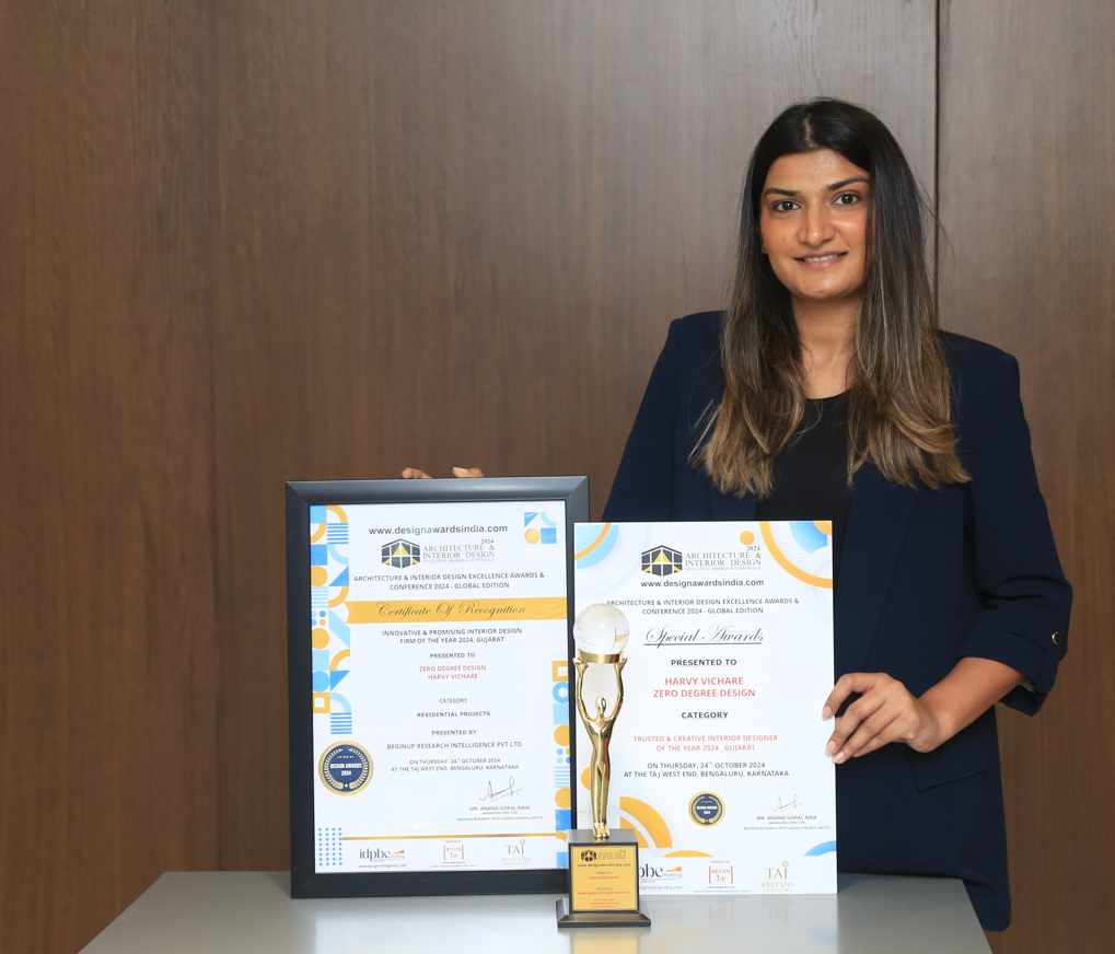 Recognised for her exceptional work, Harvy was named the “Trusted and Creative Interior Designer of the Year” at the prestigious National Architecture and Interior Design Excellence Awards, 2024 – Global Edition. Moreover, her firm Zero Degree Designs was recognised as “Innovative and Promising Interior Design Firm of the Year,” a reflection of her leadership and the firm’s pioneering approach.