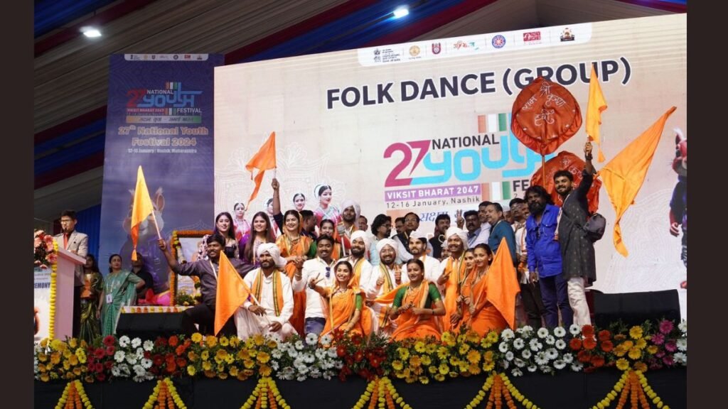 Nashik experienced the artistic talents of youth from across the nation during the festival. Additionally, the 27th National Youth Festival featured the first-ever State Sports Day. Central Youth and Sports Minister Hon.Shri Nisith Pramanik honored 15 young individuals with the National Youth Award. Cultural events, poster exhibitions, folk songs, and dances were organized at Mahakavi Kalidas Kalamandir, Udaji Maharaj Museum, and Raosaheb Thorat Auditorium.